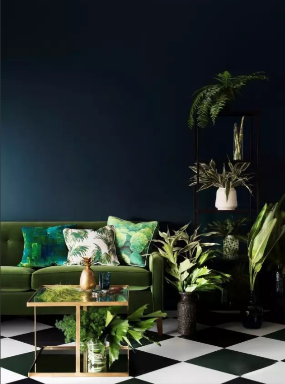 深色給人下墜感,淺色給人上升感。同純度的情況下,暖色較輕,冷色較重。使用深色系時,只涂刷一面墻是不錯的選擇,這樣會拉遠視覺空間,產生很強的縱深感。
